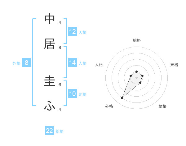 中居 圭ふさんの外格は8画の4点!