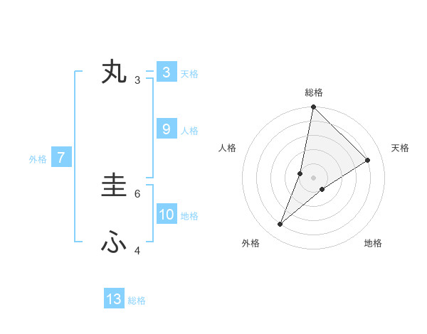 丸 圭ふさんの総格は13画の5点!
