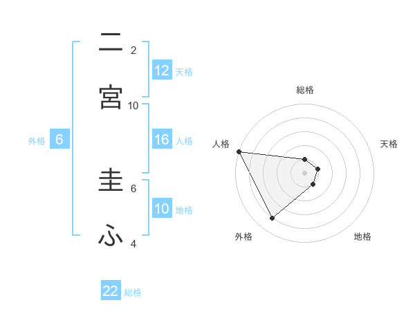 二宮 圭ふさんを姓名の画数から五運を鑑定
