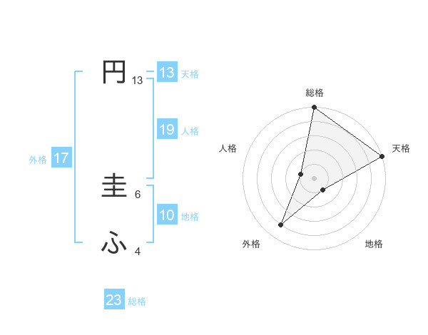 円 圭ふさんの天格は13画の5点!