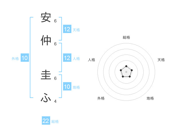 安仲 圭ふさんを姓名の画数から五運を鑑定