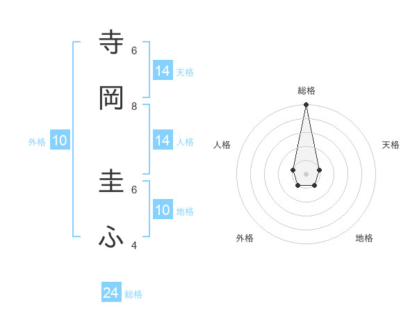 寺岡 圭ふさんを姓名の画数から五運を鑑定