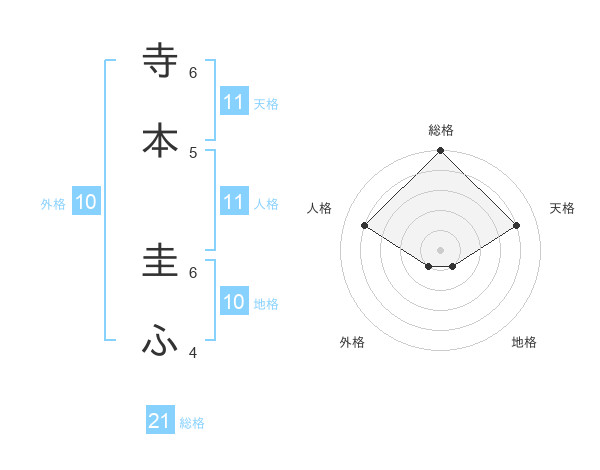 寺本 圭ふさんの天格は11画の4点!