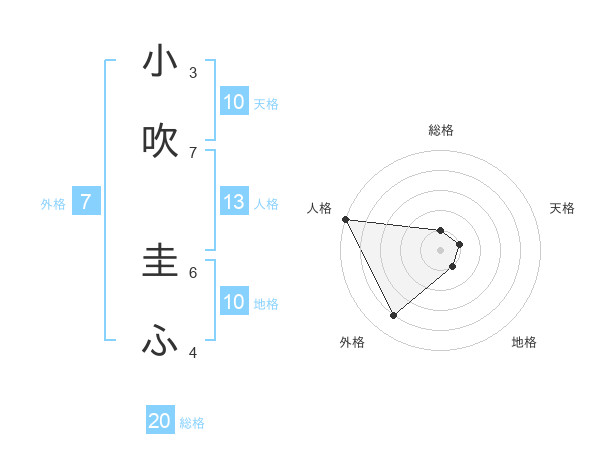 小吹 圭ふさんを姓名の画数から五運を鑑定