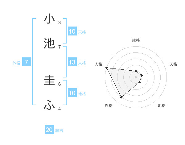 小池 圭ふさんを姓名の画数から五運を鑑定