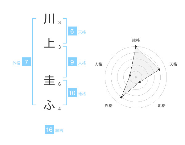 川上 圭ふさんを姓名の画数から五運を鑑定