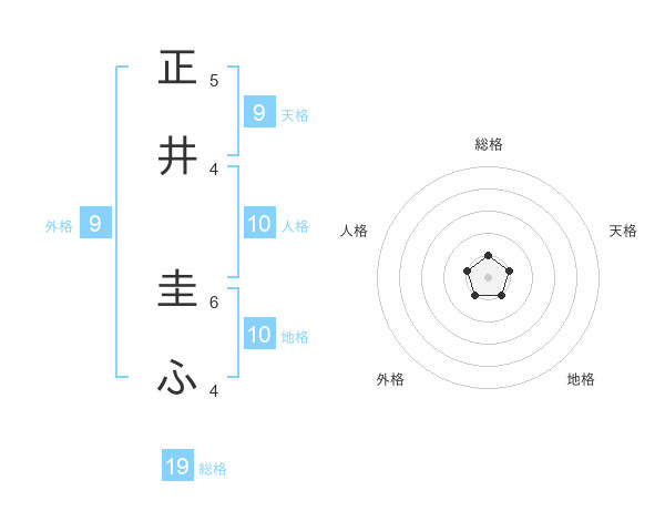 正井 圭ふさんを姓名の画数から五運を鑑定