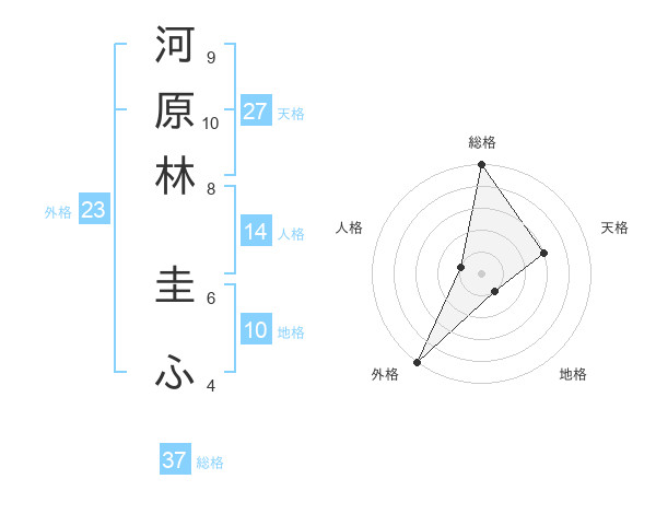 河原林 圭ふさんを姓名の画数から五運を鑑定