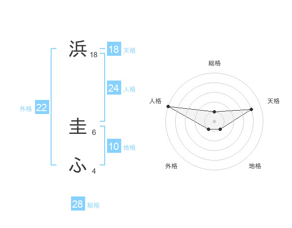 浜 圭ふさんの総格は28画の1点!