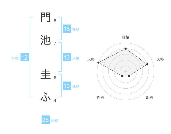 門池 圭ふさんを姓名の画数から五運を鑑定