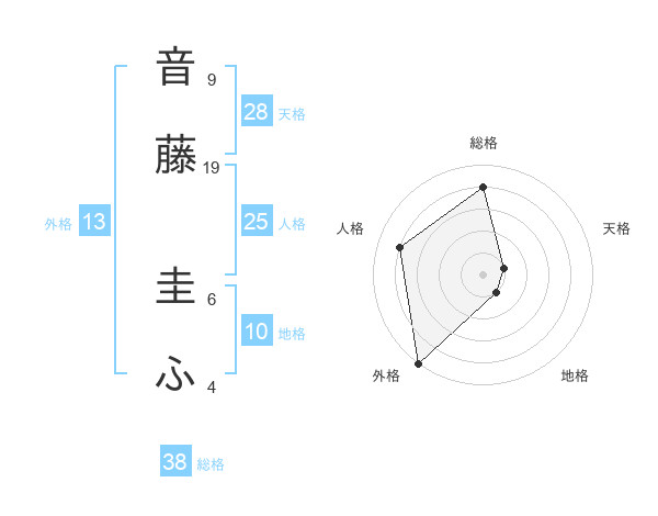 音藤 圭ふさんを姓名の画数から五運を鑑定