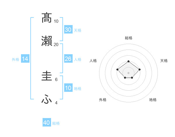 髙瀨 圭ふさんの地格は10画の1点!