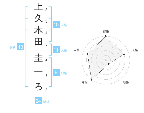 上久木田 圭一ろさんを姓名の画数から五運を鑑定