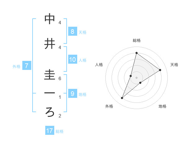 中井 圭一ろさんを姓名の画数から五運を鑑定