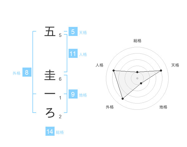 五 圭一ろさんの外格は8画の4点!