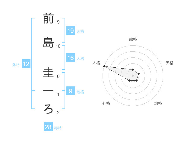 前島 圭一ろさんの天格は19画の1点!