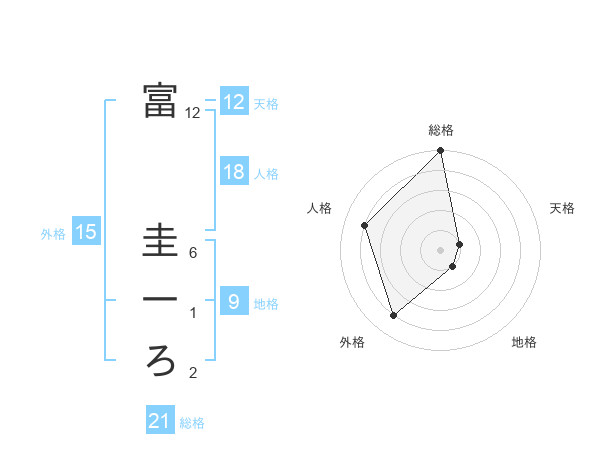 富 圭一ろさんを姓名の画数から五運を鑑定