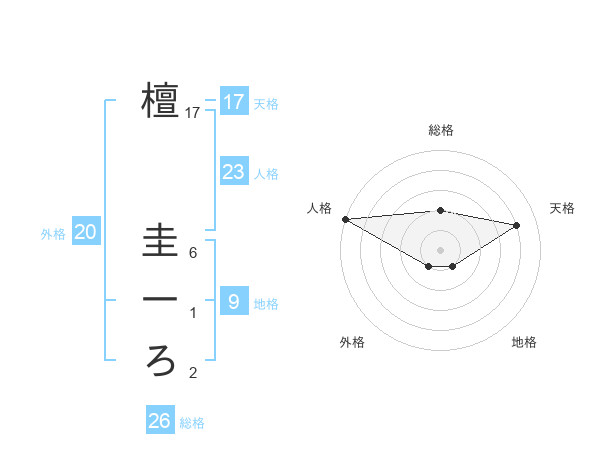 檀 圭一ろさんの総格は26画の2点!