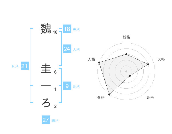 魏 圭一ろさんを姓名の画数から五運を鑑定