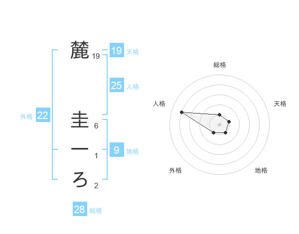 麓 圭一ろさんの外格は22画の1点!