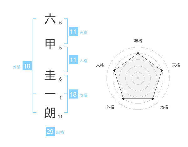 六甲 圭一朗さんを姓名の画数から五運を鑑定