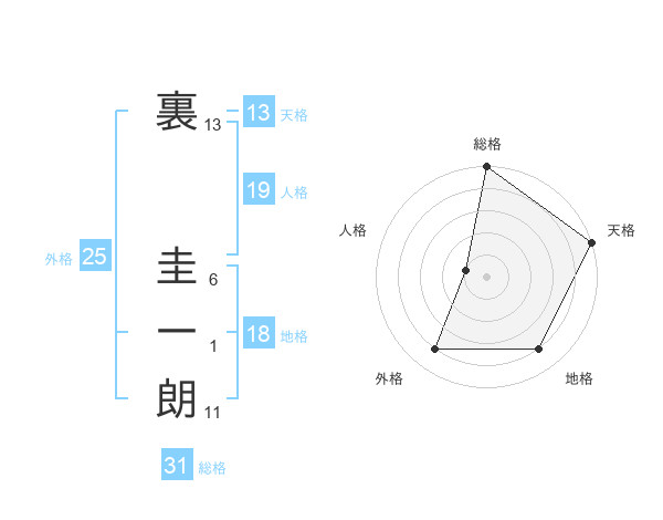 裏 圭一朗さんの総格は31画の5点!