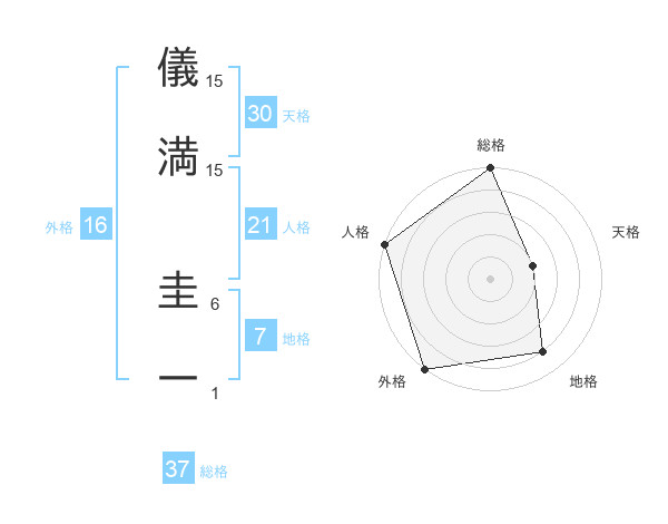 儀満 圭一さんの総格は37画の5点!