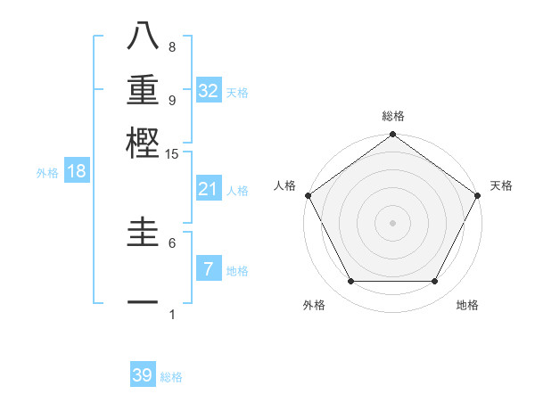 八重樫 圭一さんの総格は39画の5点!