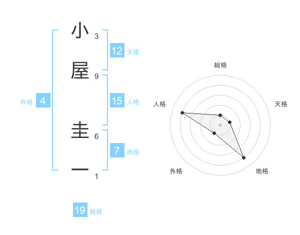 小屋 圭一さんの天格は12画の1点!