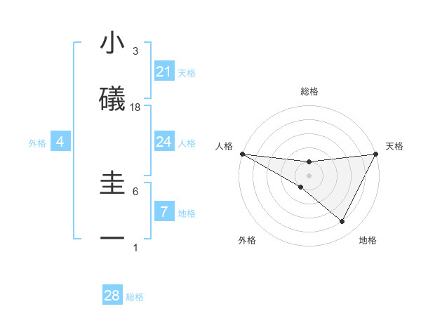 小礒 圭一さんを姓名の画数から五運を鑑定