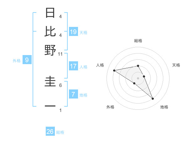 日比野 圭一さんを姓名の画数から五運を鑑定