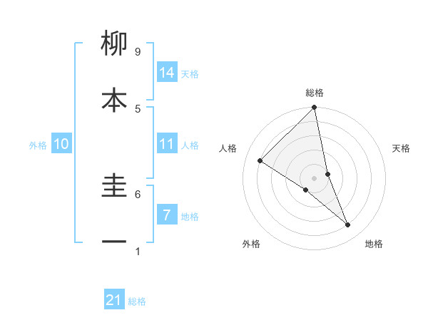 柳本 圭一さんの総格は21画の5点!