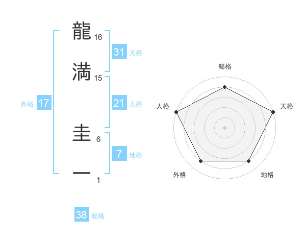 龍満 圭一さんの総格は38画の4点!