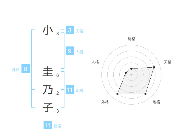 小 圭乃子さんの総格は14画の1点!