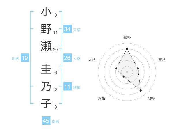 小野瀬 圭乃子さんの地格は11画の4点!