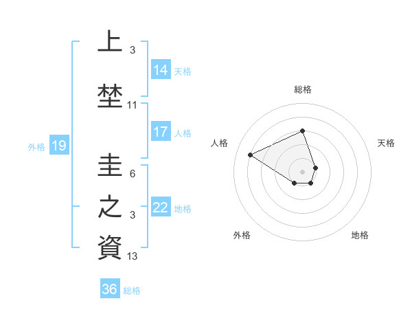 上埜 圭之資さんの天格は14画の1点!