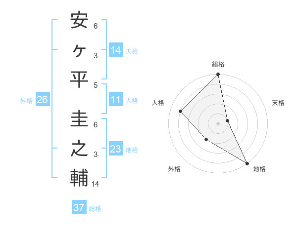 安ヶ平 圭之輔さんの総格は37画の5点