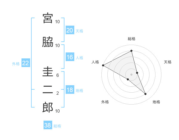 宮脇 圭二郎さんの総格は38画の4点!