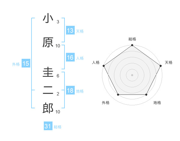小原 圭二郎さんを姓名の画数から五運を鑑定
