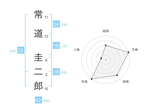 常道 圭二郎さんを姓名の画数から五運を鑑定