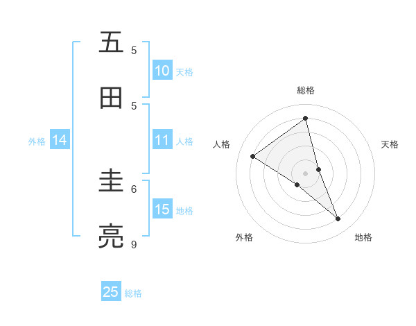 五田 圭亮さんを姓名の画数から五運を鑑定