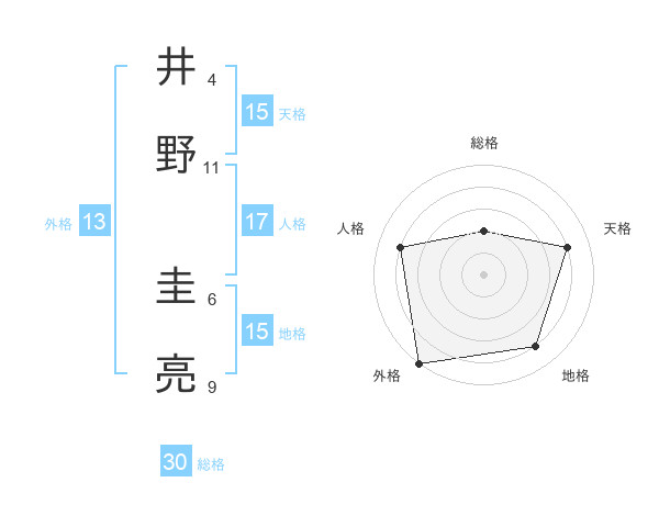 井野 圭亮さんの外格は13画の5点!