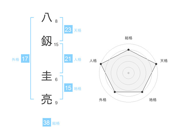 八釼 圭亮さんを姓名の画数から五運を鑑定