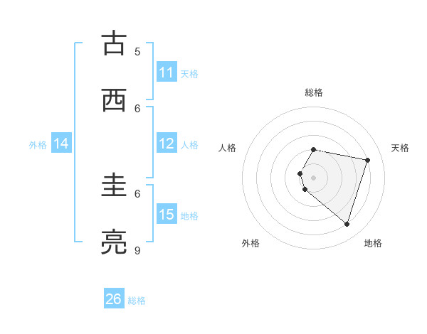 古西 圭亮さんを姓名の画数から五運を鑑定