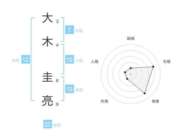 大木 圭亮さんを姓名の画数から五運を鑑定