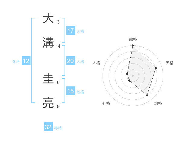 大溝 圭亮さんの総格は32画の5点!