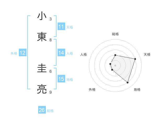 小東 圭亮さんの天格は11画の4点!