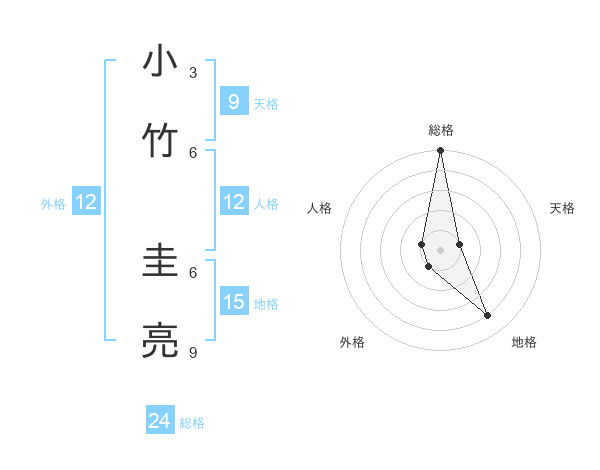 小竹 圭亮さんの総格は24画の5点!