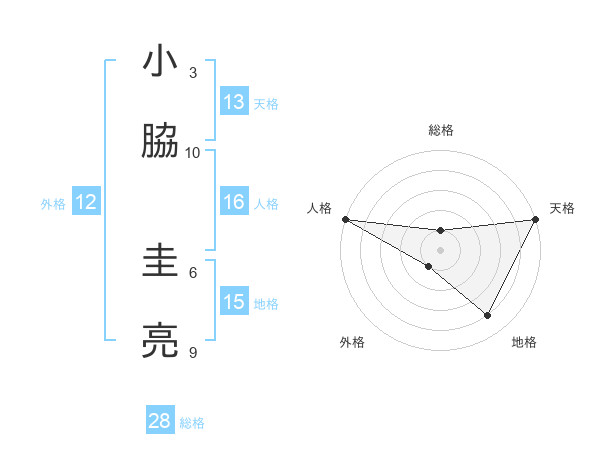 小脇 圭亮さんの総格は28画の1点!