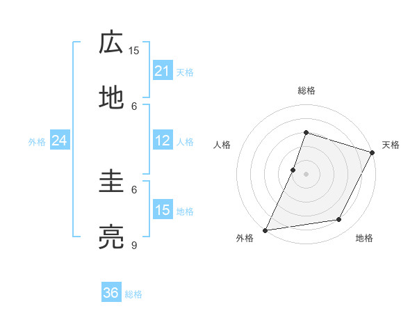 広地 圭亮さんの外格は24画の5点!